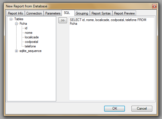 Escolhemos a tabela ou criamos a nossa instrução SQL